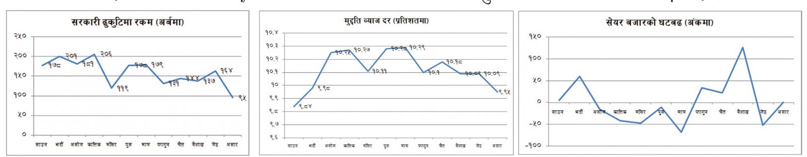 आर्थिक वर्षको अन्त्यमा सरकारी खर्च बढ्ने अनुमानका आधारमा त्यति बेला (गत जेठमा) बैंकहरूले रणनीतिक रूपमा सरकारी ऋणपत्रमा लगानी गरे । तरलता कम भएपछि बैंकहरूले अन्तरबैंक र एसएलएफमार्फत स्रोत व्यवस्थापन गरे । असार लागेपछि सरकारी खर्ब बढ्यो । बजारमा पैसा आयो । वित्तीय प्रणालीमा तरलता सहज बन्यो । तर त्यो अवस्था लामो समय टिकेन । निक्षेप निरन्तर घटिरह्यो । आयातसँगै कर्जा प्रवाह पनि निरन्तर बढिरह्यो । रेमिट्यान्स आप्रवाहमा कमी आयो । सरकार परिवर्तनसँगै चालु आर्थिक वर्षको बजेट पूर्ण रूपमा कार्यान्वयन हुन सकेन । सरकार प्रतिस्थापन बजेटको तयारीमा छ । यही कारण सरकारी खर्च हुन सकेन । यो नै वित्तीय प्रणालीमा तरलता अभावको प्रमुख कारण रहेको जानकारहरू बताउँछन् । साउन मसान्तसम्म वित्तीय प्रणालीमा ३ खर्ब रुपैयाँभन्दा बढी थन्किएको छ । यसअनुसार गत असारमा सरकारका विभिन्न खातामा १ खर्ब ९४ अर्ब ७० करोड (प्रदेश सरकार तथा स्थानीय तहको खातामा रहेको रकमसमेत) नगद मौज्दात थियो ।