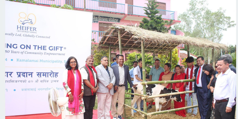 शनिबार सिन्धुलीको कमलामाई नगरपालिकामा आफ्नो ८०औँ वार्षिकोत्सव मनाउँदै हेफर इन्टरनेशनलले उपहार हस्तान्तरण कार्यक्रम पासिङ अन द गिफ्ट सम्पन्न गरेको हो ।