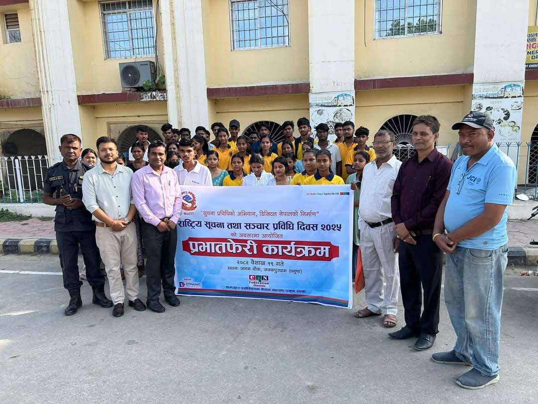 कम्प्युटर एशोसिएसन नेपाल महासंघ (क्यान) धनुषा शाखाको आयोजनामा शुक्रबार बिहान जनक चोकदेखि रेलवे स्टेशनसम्म प्रभातफेरी गरिएको हो ।