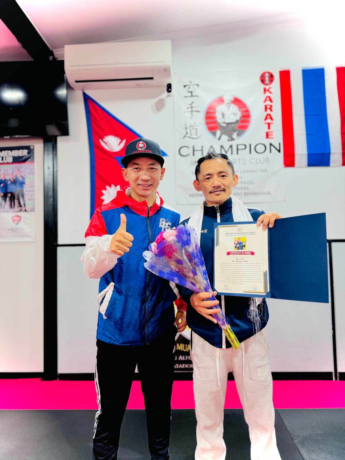 च्याम्पियन मार्सल आटर््स क्लब युएसएका अध्यक्ष सुनिल लामाले उक्त सम्मान कार्यक्रमको अध्यक्षता गरेका थिए । लामा नेपालका पूर्वखेलाडी र च्याम्पियन मार्सल आटर््स क्लबका प्रशिक्षक हुन् । लामाले विशेष गरी डायस्पोरा समुदायभित्र खेलाडीले उत्कृष्ट नतिजा दिइरहेको बताए ।