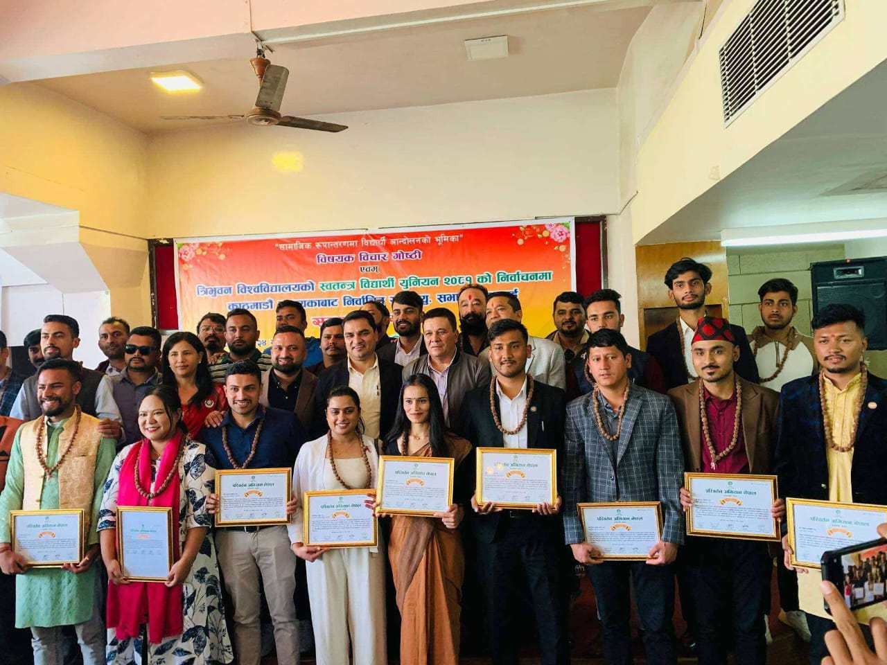 काठमाडौं । परिवर्तन अभियान नेपालले काठमाडौं उपत्यकाका विभिन्न क्याम्पसमा निर्वाचित स्वतन्त्र विद्यार्थी युनियन (स्ववियु) सभापतिहरुलाई सम्मान गरेको छ ।