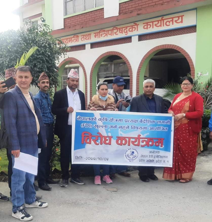 ज्ञापनपत्रमा सरकारले नेपालमा बैदेशिक लगानी ल्याउँदा अहिले भइरहेको ग्रामिण रोजगारीमा त्यसको प्रत्यक्ष असर पर्ने, हालसम्म कृषि पेशामा आवद्ध भएका व्यवसायीलाई मजदुर बनाउने र त्यसको प्रत्यक्ष लाभ विदेशी लगानीकर्ताको हातमा पुग्ने निश्चित देखिएको छ । अहिलेको सरकारले संसद विघटन पछि उद्योग मन्त्रालय मार्फत गएको २०७७ पौष २० गते राजपत्रमा सूचना प्रकाशित गरि कृषिमा विदेशी लगानी खुल्ला गर्ने निर्णय सार्वजनिक गरेकोले तत्काल उक्त निर्णय फिर्ता लिनु पर्ने जोडदार माग गरिएको कुरा नेपाल डेरी एसोशिएसनका केन्द्रिय महासचिव प्रल्हाद दाहालले बताए ।