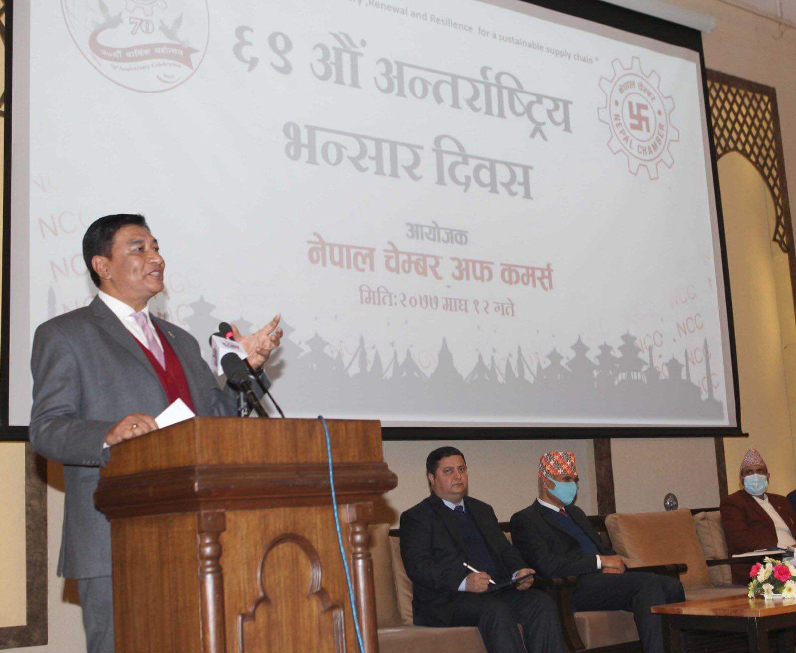 त्यसैगरि, नेपाल चेम्बर अफ कमर्सका अध्यक्ष राजेश काजी श्रेष्ठले अहिले विश्वव्यापी महामारीको रुपमा फैलिएको कोभिड १९ बाट विश्व अर्थतन्त्रमा गम्भीर असर परेको उल्लेख गर्दै नेपाल जस्तो अति कम विकसित र आत्मनिर्भर हुन नसकेको मुलुकमा यसबाट उत्पन्न चुनौतीसँग सामना गर्न व्यवसायी तथा उद्योगीहरुलाइ झनै कठिन रहेको अवस्था बोध गराए । अध्यक्ष श्रेष्ठले मुलुकको अर्थतन्त्रमा निजी क्षेत्रको अहम भूमिका रहने र निजी क्षेत्रको दीगो विकासले नै आर्थिक विकास तथा रोजगारी अभिवृद्धिलाइ टेवा दिने धारणा राखे । निजी क्षेत्रको मनोवल उच्च बनाउन आवश्यक भएको पनि उनले स्पस्ट पारे । चेम्बर अध्यक्ष श्रेष्ठले आयात– निर्यातको प्रभावकारिताको लागि कारोबार मूल्यलाई मान्यता दिनुपर्नेमा जोड दिदै यसबाट राजश्वमा प्रतिकुल प्रभाव नपर्ने र राजश्वमा पनि थप योगदान हुने औंल्याए । ‘भंसारमा जति सहज वातावरण हुन्छ, त्यति नै बढि देशको आर्थिक गतिबिधि पनि सहज हुने भएकोले भंसारलाई प्रबिधी तथा उच्च पूर्वाधारयुक्त बनाउनुपर्छ’ उनले चेम्बरको तर्फबाट धारणा राख्दै भने ।