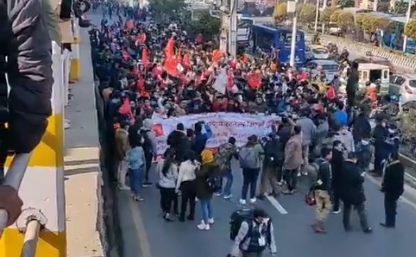 काठमाडाैं, पुस १९ – नेपाल कम्युनिष्ट पार्टी (नेकपा)को ओली समूहका अनेरास्ववियूले काठमाडौंमा प्रदर्शन गरेको छ। राजधानीको विभिन्न कलेजबाट निश्किएर माइतीघर मण्डलामा भेला भएका विद्यार्थीहरु नारावाजी गर्दै कार्की ब्याङ्क्वेटसम्म पुगेका थिए। कार्की ब्याङ्क्वेटमा पुगेर अनेरास्ववियूको भेला सुरु भएको छ।