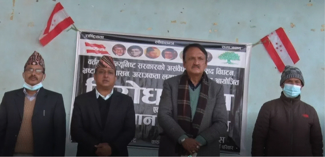 कार्यक्रममा काठमाडौं क्षेत्र नम्बर ५ का उपसभापति भैरव सापकोटाले नेकपाले संविधानमाथि प्रहार गरेकाले जनताको विश्वास गुमाउँदै गएको बताए । आफ्नै सांसद् धेरै भएको प्रतिनिधिसभा विघटन गरेर प्रधानमन्त्री केपी शर्मा ओलीले जनतामाथि घात गरेको उनको भनाई छ । काठमाडौं ५ को (क) प्रदेशका सभापतिसमेत रहेका सापकोटाले हिजो केही ओला कि भनेर कम्युनिष्टलाई मतदान गर्नेहरु अहिले निराश भएको टिप्पणी गरे । सापकोटाले कम्युनिष्टको सरकार इतिहासमै कलंकित र दुर्गन्धित भएको बताए । उनले सत्तामा पुगेर जनताको हित गर्छौं भन्ने कम्युनिष्टले आफ्नै मात्र हित गरेकाले उनीहरुको एजेण्डासमेत केही नभएको दाबी गरे ।